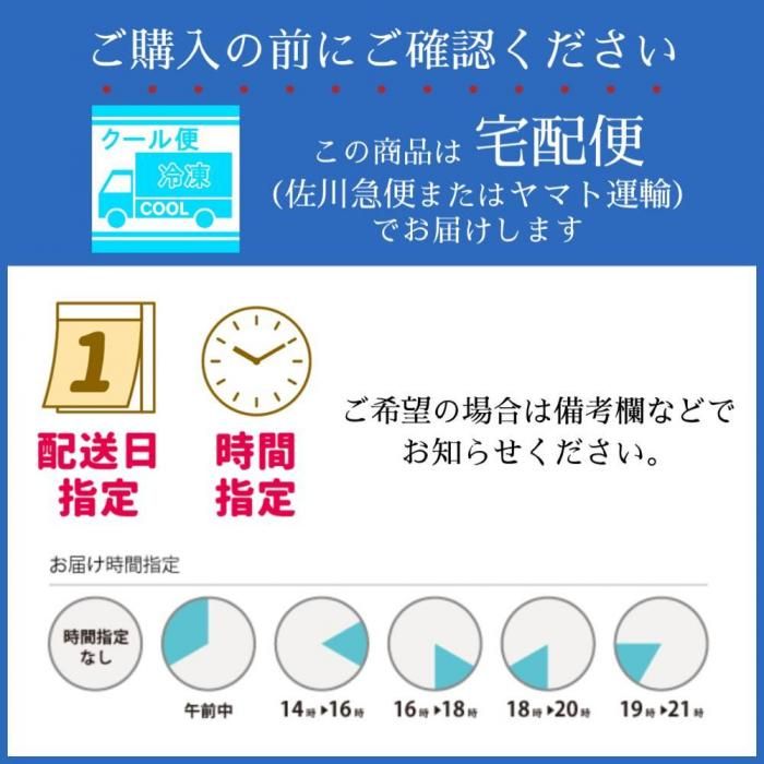| 配送方法 | 宅配クール便(佐川急便またはヤマト運輸) |